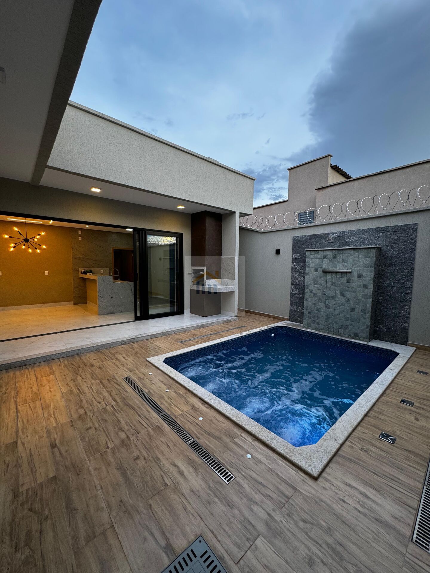 Com uma área construída de 154m², esta residência oferece um espaço gourmet completo com churrasqueira, ideal para receber amigos e familiares, além de uma relaxante piscina com hidromassagem para os momentos de lazer.
