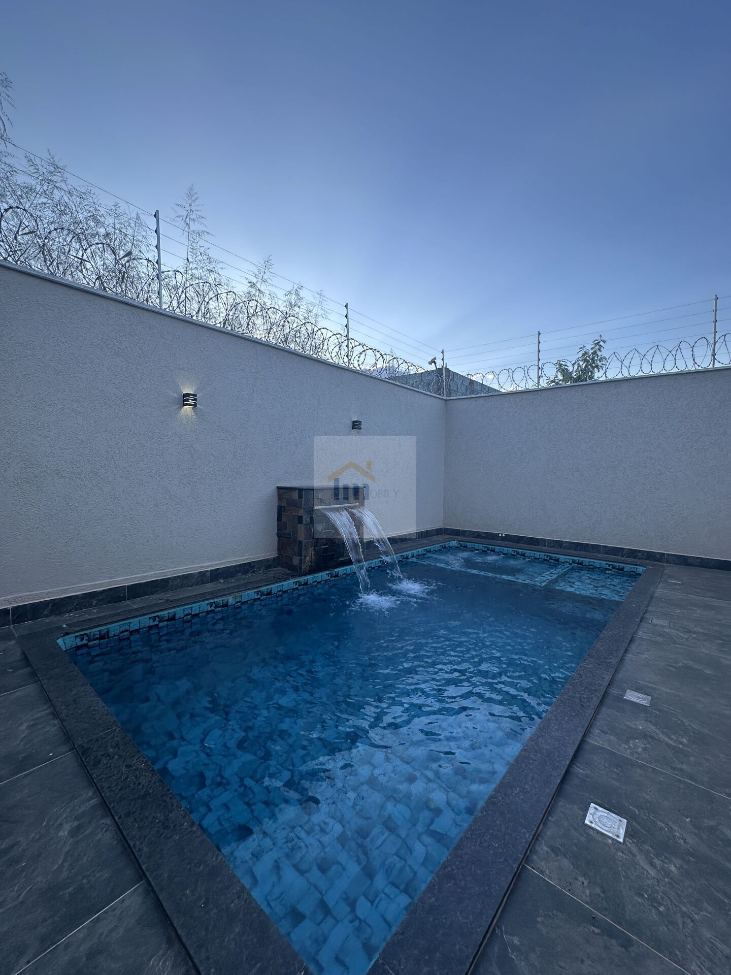 Piscina de 18m² com cascata, iluminação e aquecimento solar