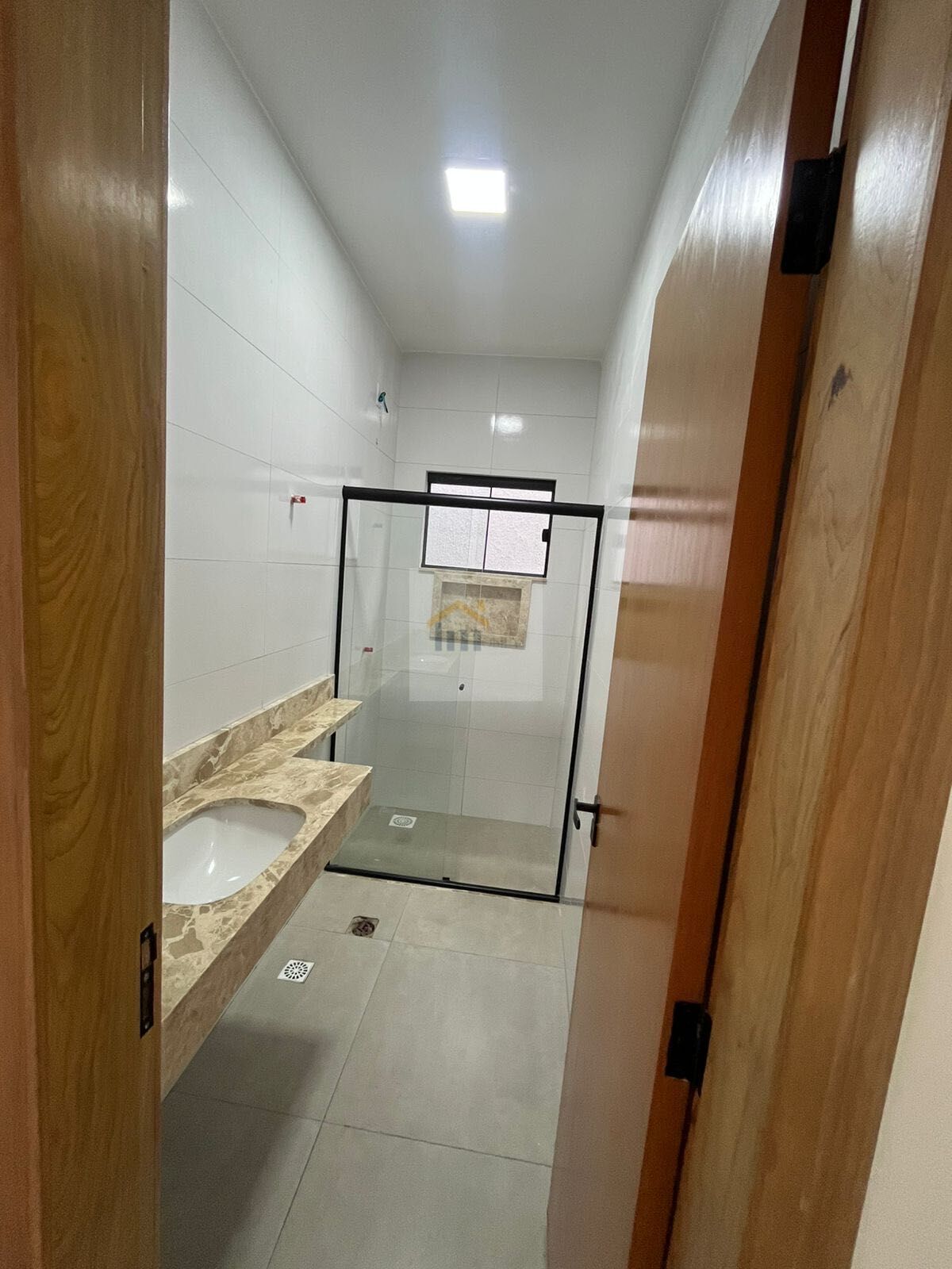 Casa nova pronta para morar com 3 quartos sendo 1 suíte, Garagem coberta, espaço verde para jardim com paisagismo, banheiros com box ja instalados, nichos e cubas no bege Bahia, cozinha em ambiente independente, sala com pé direito duplo, espaço gourmet com churrasqueira, área de serviço e quintal no fundo com ducha.