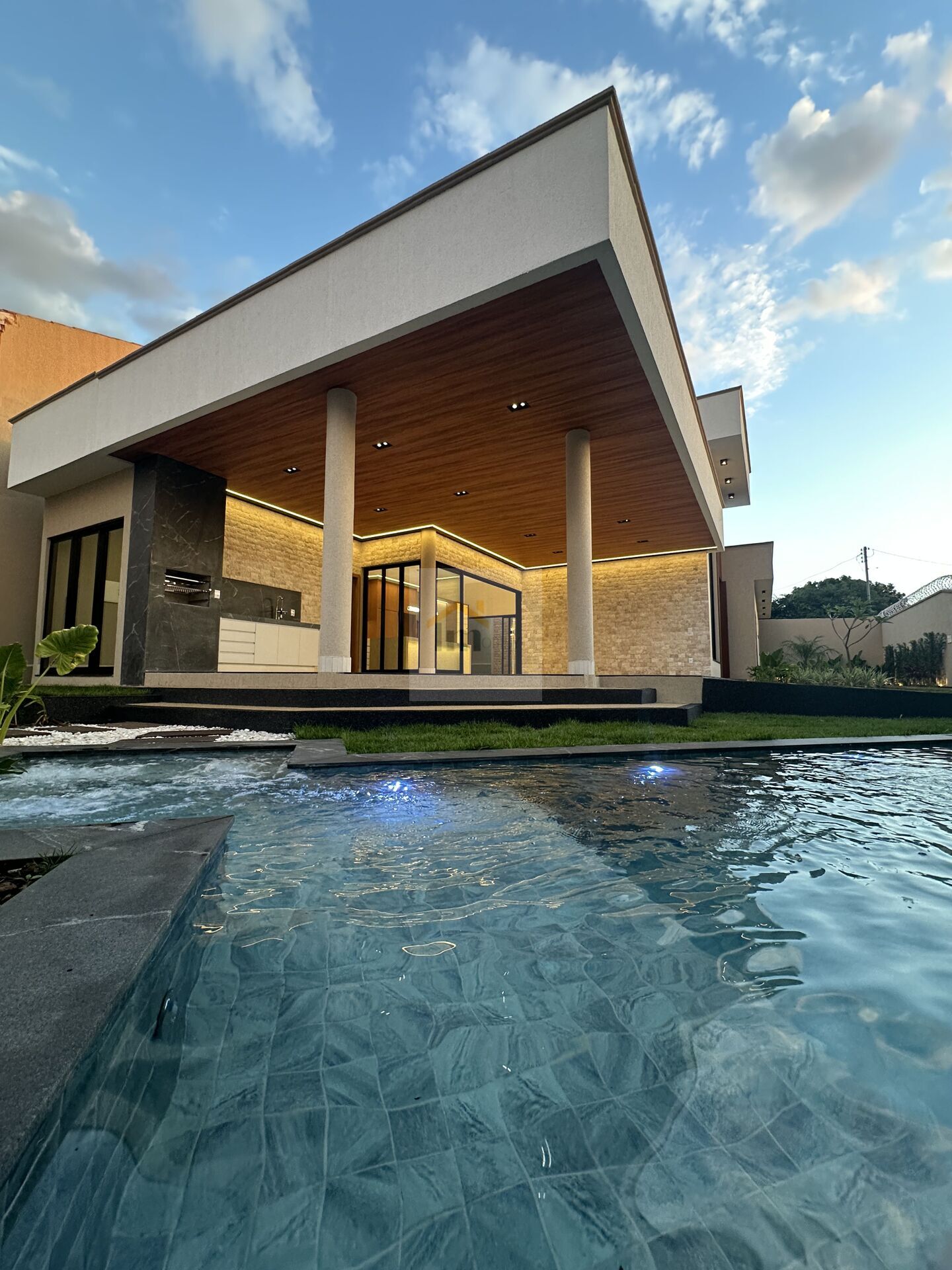 Piscina Aquecida com Hidromassagem, Iluminada, com Cascata Naja Inox e todos os Maquinários Instalados.